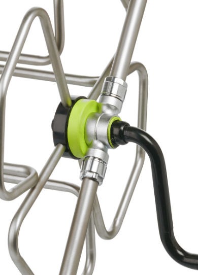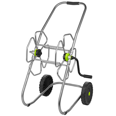 Avvolgitubo in acciaio inox con ruote in gomma dura ed impugnatura ergonomica.